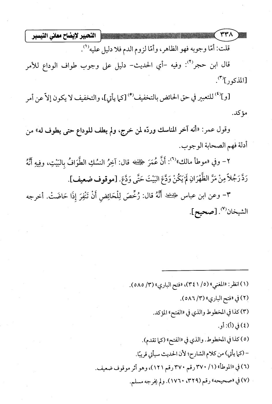 3 - وعن ابن عباس - رضي الله عنهما - أَنَّهُ قال: رُخِّصَ لِلْحَائِضِ أَنْ تَنْفِرَ إِذَا حَاضَتْ. أخرجه الشيخان (¬7). [صحيح].