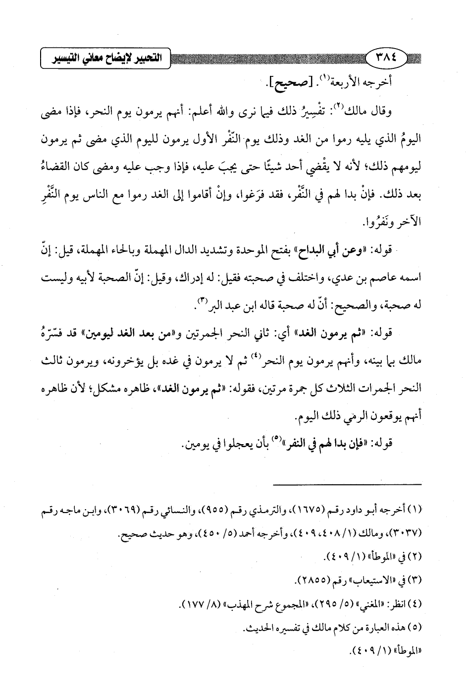 (¬5) هذه العبارة من كلام مالك في تفسيره الحديث.