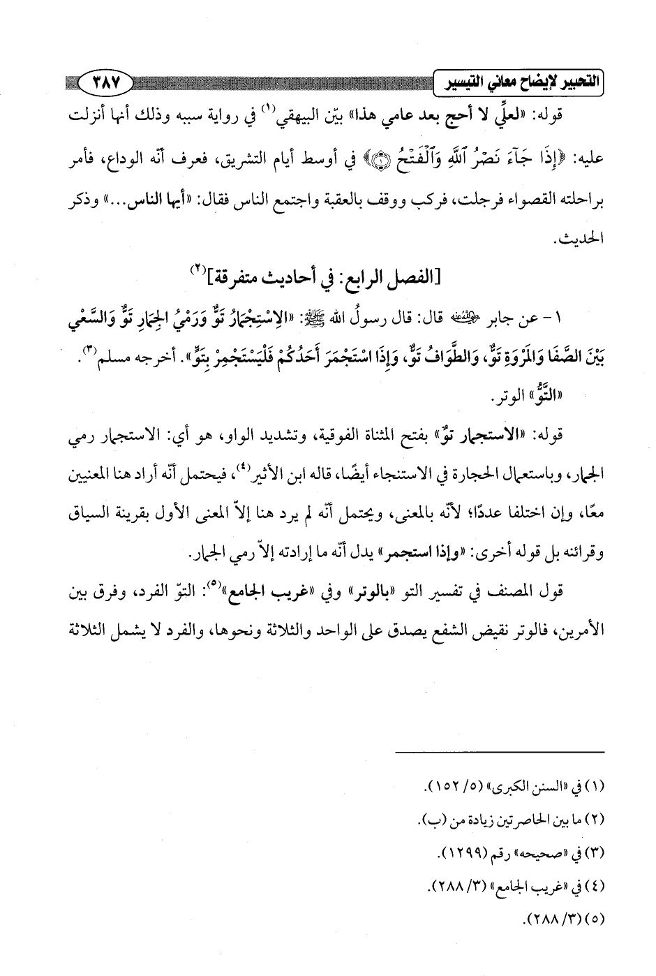 1 - عن جابر - رضي الله عنه - قال: قال رسولُ الله - صلى الله عليه وسلم -: "الِاسْتِجْمَارُ تَوٌّ وَرَمْيُ الجِمَارِ تَوٌّ وَالسَّعْي بَيْنَ الصَّفَا وَالمَرْوَةِ تَوٌّ، وَالطَّوَافُ تَوٌّ، وَإِذَا اسْتَجْمَرَ أَحَدُكُمْ فَلْيَسْتَجْمِرْ بِتَوٍّ". أخرجه مسلم (¬3).