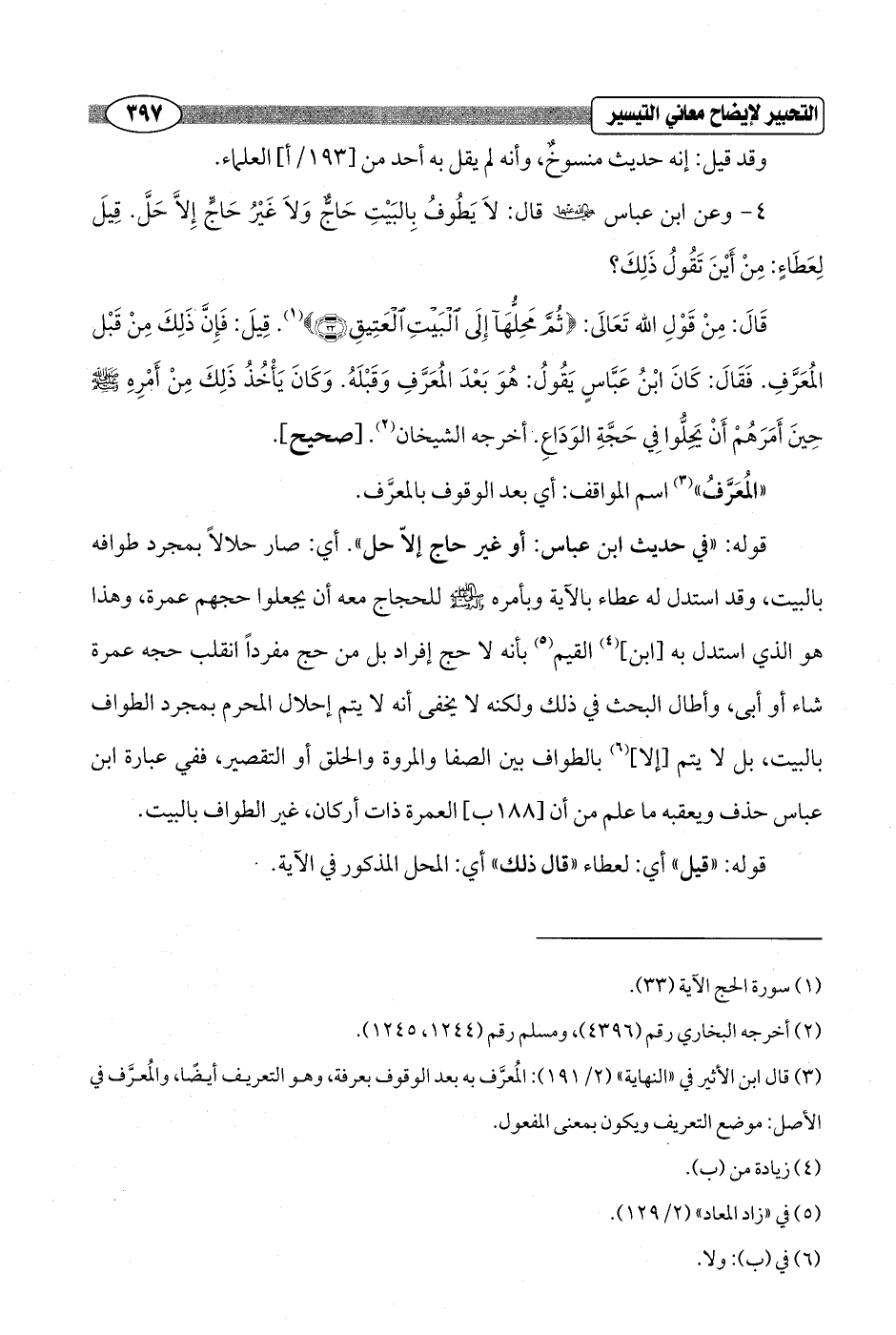 4 - وعن ابن عباس - رضي الله عنهما - قال: لاَ يَطُوفُ بِالبَيْتِ حَاجٌّ وَلاَ غيْرٌ حَاجٍّ إِلاَّ حَلَّ. قِيلَ لِعَطَاءٍ: مِنْ أَيْنَ تَقُولُ ذَلِكَ؟