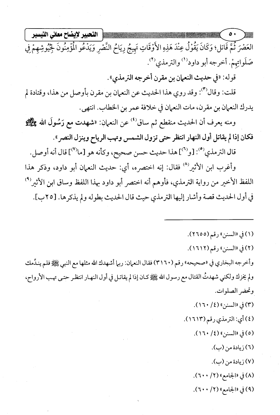 قوله: "في حديث النعمان بن مقرن أخرجه الترمذي".