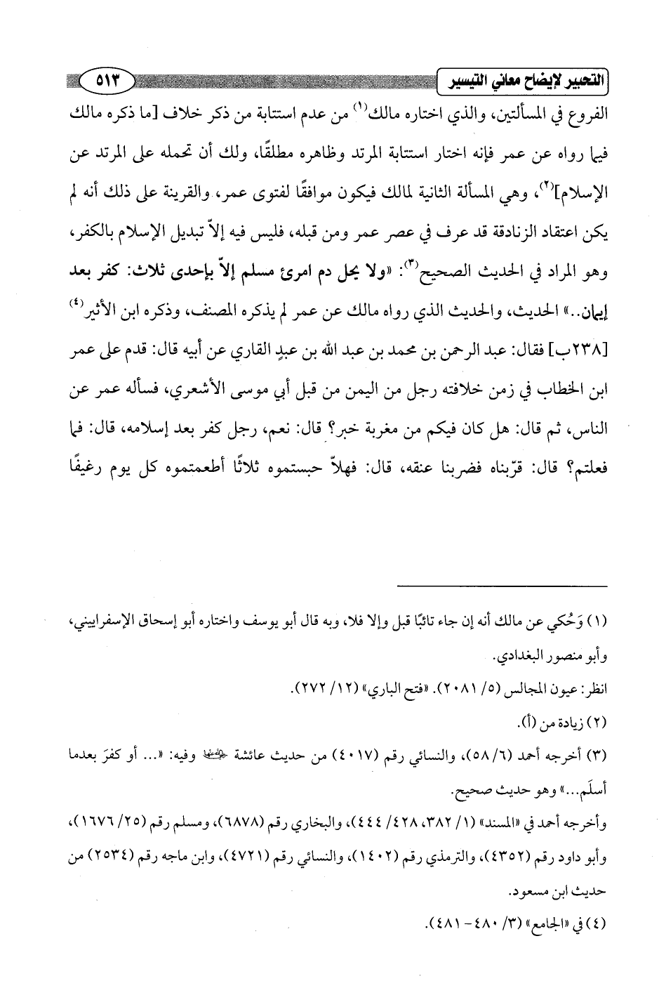 (¬3) أخرجه أحمد (6/ 58)، والنسائي رقم (4017) من حديث عائشة - رضي الله عنها - وفيه: " ... أو كفرَ بعد ما أسلَم ... " وهو حديث صحيح.