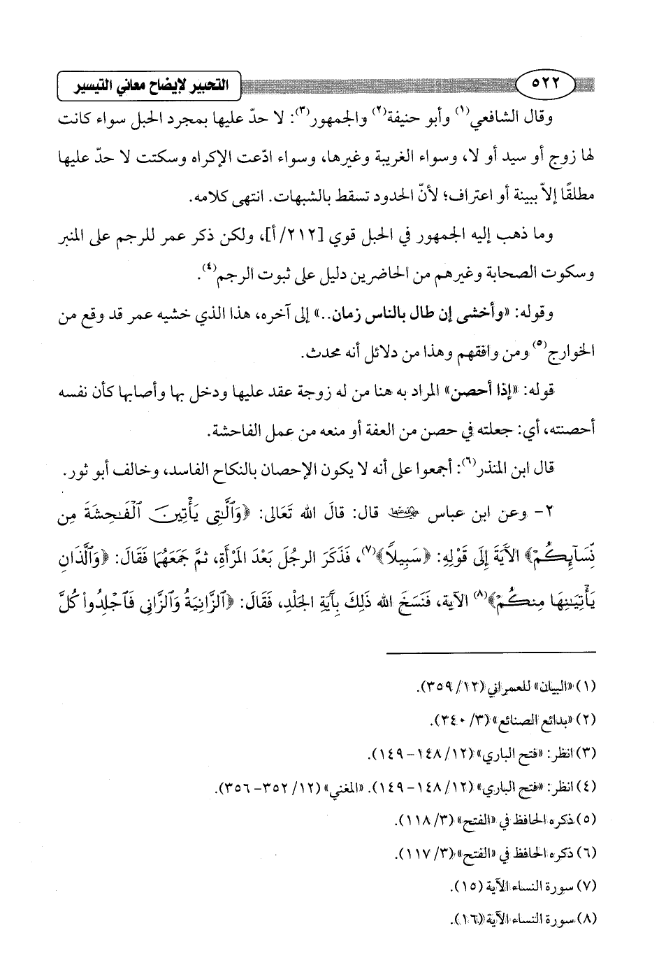 وما ذهب إليه الجمهور في الحبل قوي [212/ أ]، ولكن ذكر عمر للرجم على المنبر وسكوت الصحابة وغيرهم من الحاضرين دليل على ثبوت الرجم (¬4).