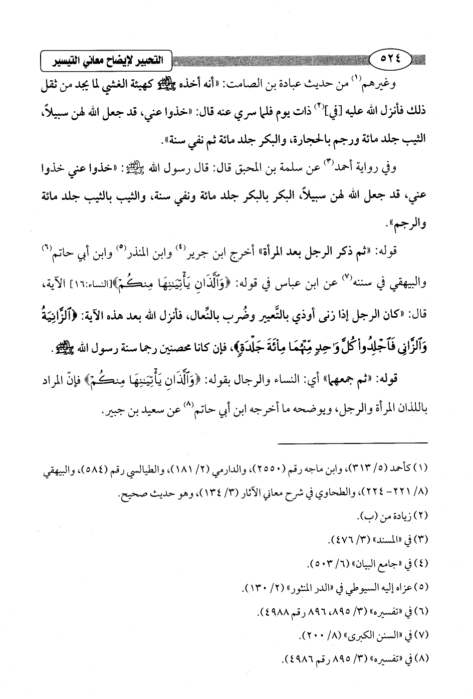 قوله: "ثم جمعهما" أي: النساء والرجال بقوله: {وَاللَّذَانِ يَأْتِيَانِهَا مِنْكُمْ} فإنّ المراد باللذان المرأة والرجل، ويوضحه ما أخرجه ابن أبي حاتم (¬8) عن سعيد بن جبير.