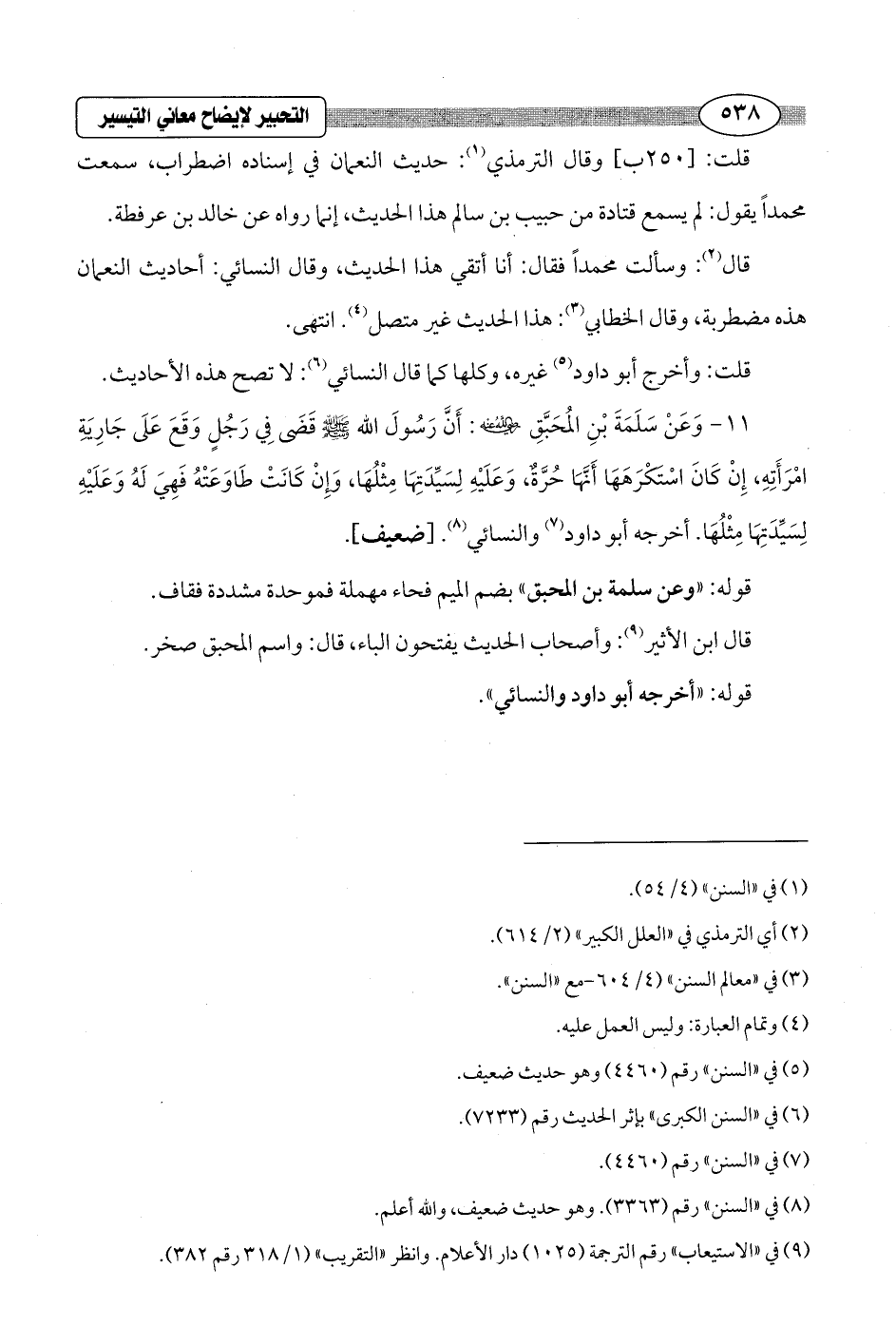 قال (¬2): وسألت محمداً فقال: أنا أتقي هذا الحديث، وقال النسائي: أحاديث النعمان هذه مضطربة، وقال الخطابي (¬3): هذا الحديث غير متصل (¬4). انتهى.