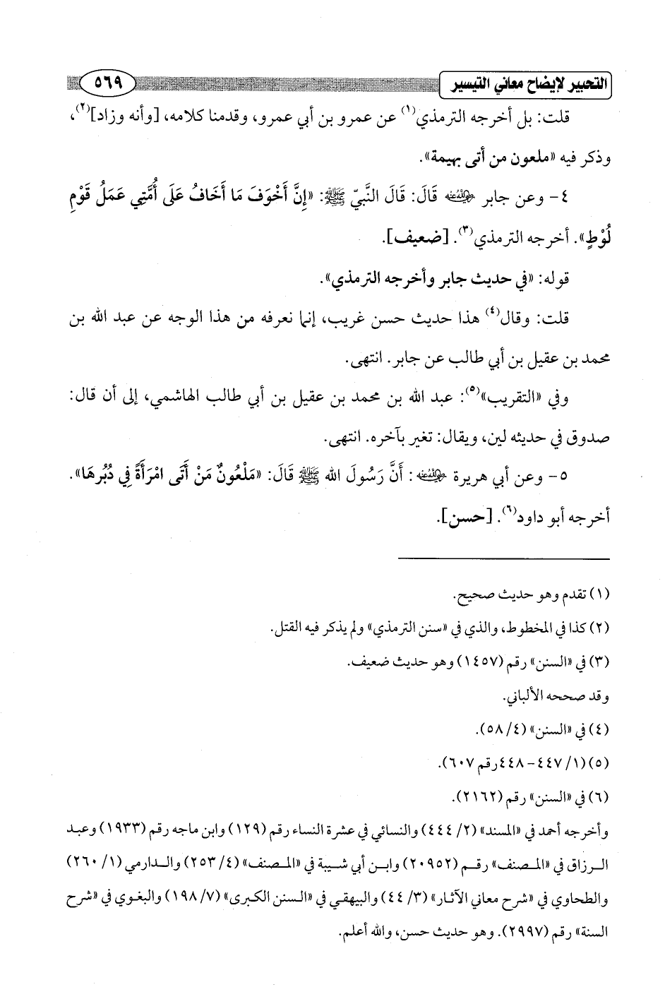 4 - وعن جابر - رضي الله عنه - قَالَ: قَالَ النَّبيّ - صلى الله عليه وسلم -: "إِنَّ أَخْوَفَ مَا أَخَافُ عَلَى أُمَّتِي عَمَلُ قَوْمِ لُوْطٍ". أخرجه الترمذي (¬3). [ضعيف].