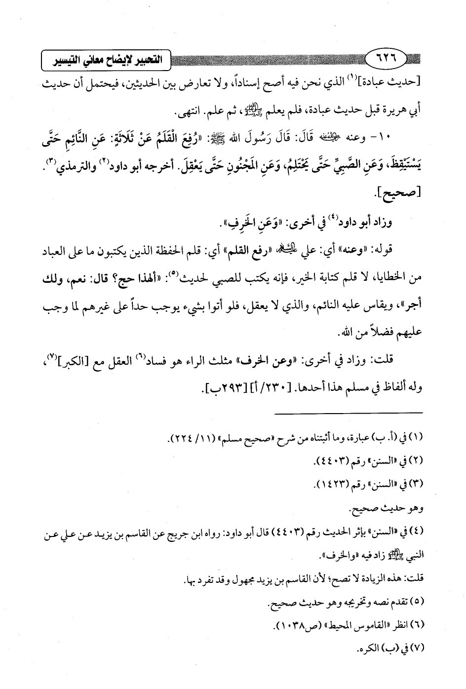 10 - وعنه - رضي الله عنه - قَالَ: قَالَ رَسُولَ الله - صلى الله عليه وسلم -: "رُفِعَ الْقَلَمُ عَنْ ثَلَاَثةٍ: عَنِ النَّائِمِ حَتَّى يَسْتَيْقِظَ, وَعَنِ الصَّبِيِّ حَتَّى يَحْتَلِمُ، وَعَنِ المَجْنُونِ حَتَّى يَعْقِلَ. أخرجه أبو داود (¬2) والترمذي (¬3). [صحيح].