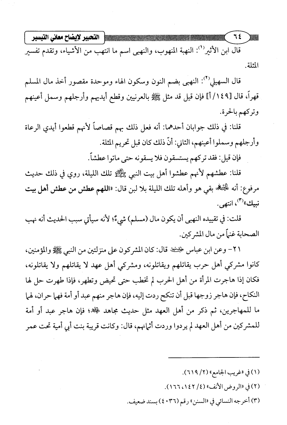 قال السهيلي (¬2): النهبى بضم النون وسكون الهاء وموحدة مقصور أخذ مال المسلم قهراً، قال [149/ أ] فإن قيل قد مثل - صلى الله عليه وسلم - بالعرنيين وقطع أيديهم وأرجلهم وسمل أعينهم وتركهم بالحرة.