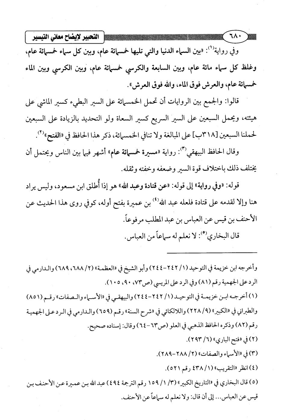 (¬1) أخرجه ابن خزيمة في التوحيد (1/ 242 - 244) والبيهقي في "الأسماء والصفات" رقم (851) والطبراني في "الكبير" (9/ 228) واللالكائي في "شرح السنة" رقم (659) والدارمي في الرد على الجهمية رقم (82) وذكره الحافظ الذهبي في العلو (ص 63 - 64) وقال: إسناده صحيح.