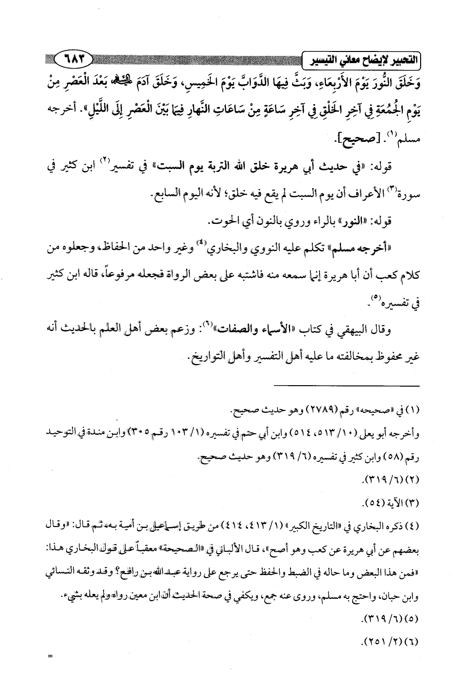 "أخرجه مسلم" تكلم عليه النووي والبخاري (¬4) وغير واحد من الحفاظ، وجعلوه من كلام كعب أن أبا هريرة إنما سمعه منه فاشتبه على بعض الرواة فجعله مرفوعاً، قاله ابن كثير في تفسيره (¬5).