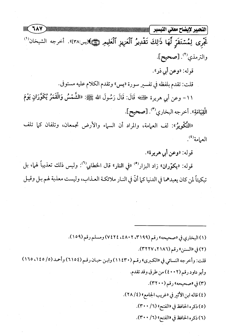تَجْرِي لِمُسْتَقَرٍّ لَهَا ذَلِكَ تَقْدِيرُ الْعَزِيزِ الْعَلِيمِ (38)} [يس: 38] ". أخرجه الشيخان (¬1) والترمذي (¬2). [صحيح].