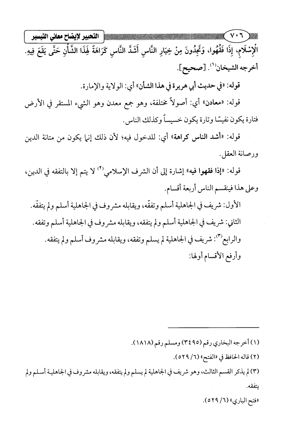 قوله: "إذا فقهوا فيه" إشارة إلى أن الشرف الإسلامي (¬2) لا يتم إلا بالتفقه في الدين، وعلى هذا فينقسم الناس أربعة أقسام.