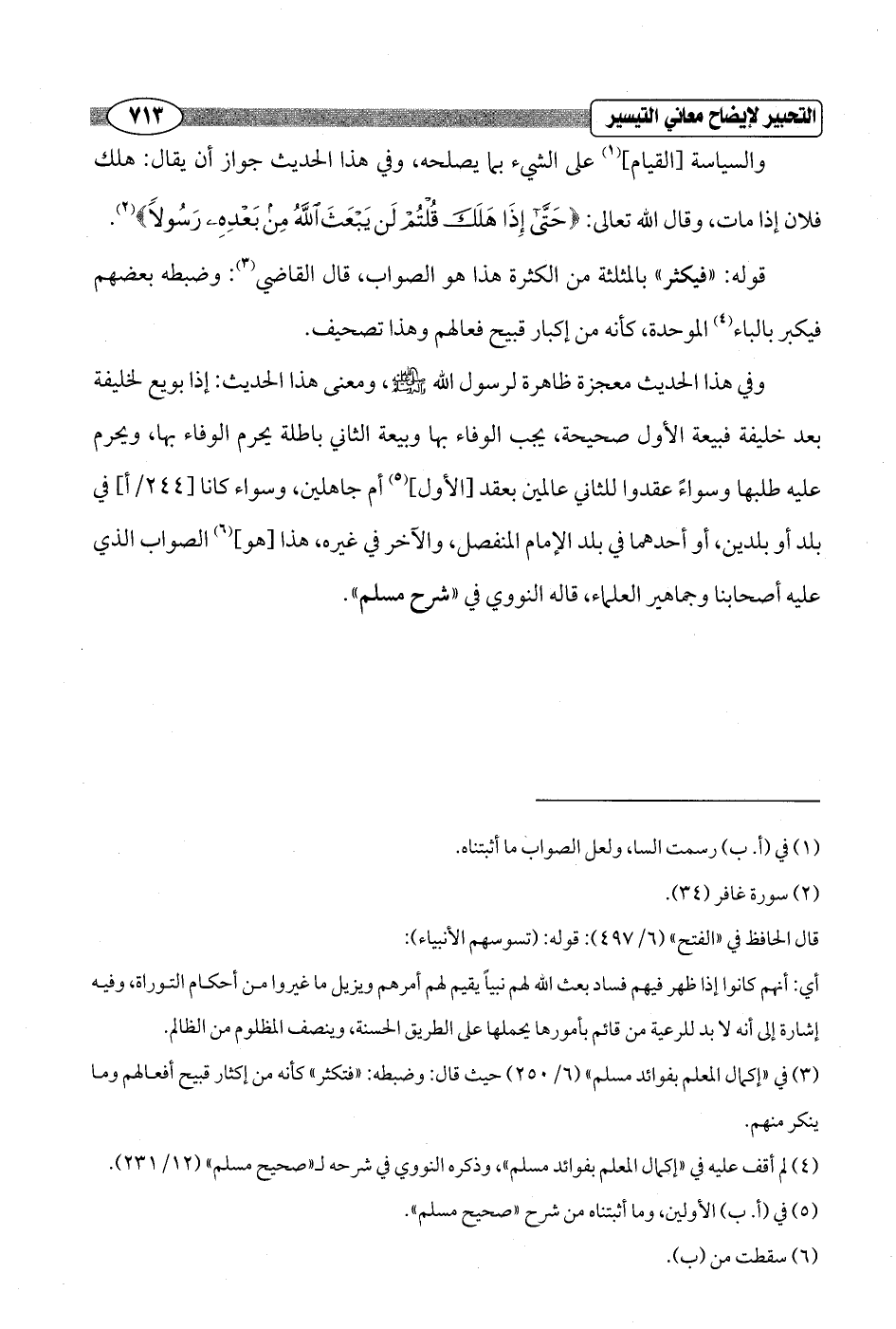 (¬3) في "إكمال المعلم بفوائد مسلم" (6/ 250) حيث قال: وضبطه: "فتكثر" كأنه من إكثار قبيح أفعالهم وما ينكر منهم.