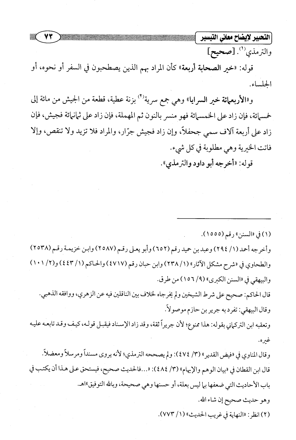 قوله: "خير الصحابة أربعة" كأن المراد بهم الذين يصطحبون في السفر أو نحوه، أو الجلساء.