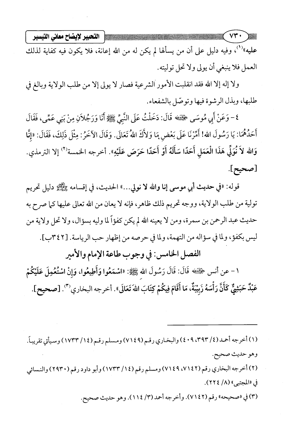 الفصل الخامس: في وجوب طاعة الإمام والأمير