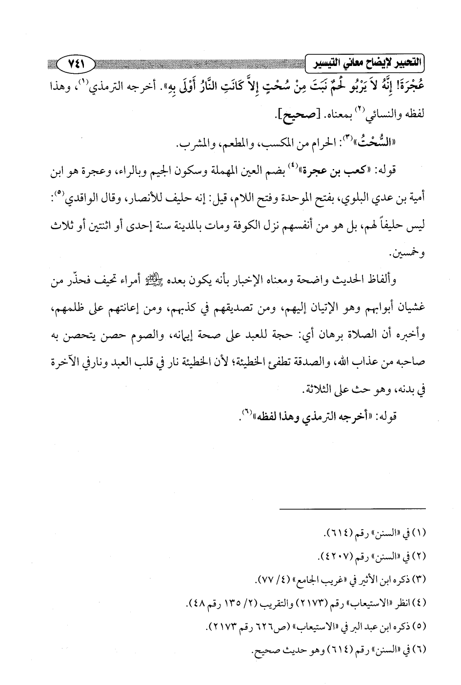 عُجْرَةَ! إِنَّهُ لاَ يَربُو لَحْمٌ نَبَتَ مِنْ سُحْتٍ إِلاَّ كَانَتِ النَّارُ أَوْلَى بِهِ". أخرجه الترمذي (¬1)، وهذا لفظه والنسائي (¬2) بمعناه. [صحيح].
