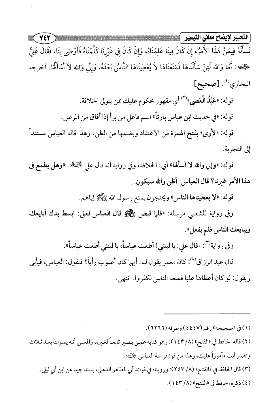 (¬2) قاله الحافظ في "الفتح" (8/ 143): وهو كناية عمن يصير تابعاً لغيره, والمعنى أنه يموت بعد ثلاث وتصير أنت مأموراً عليك، وهذا من قوة فراسة العباس - رضي الله عنه -.