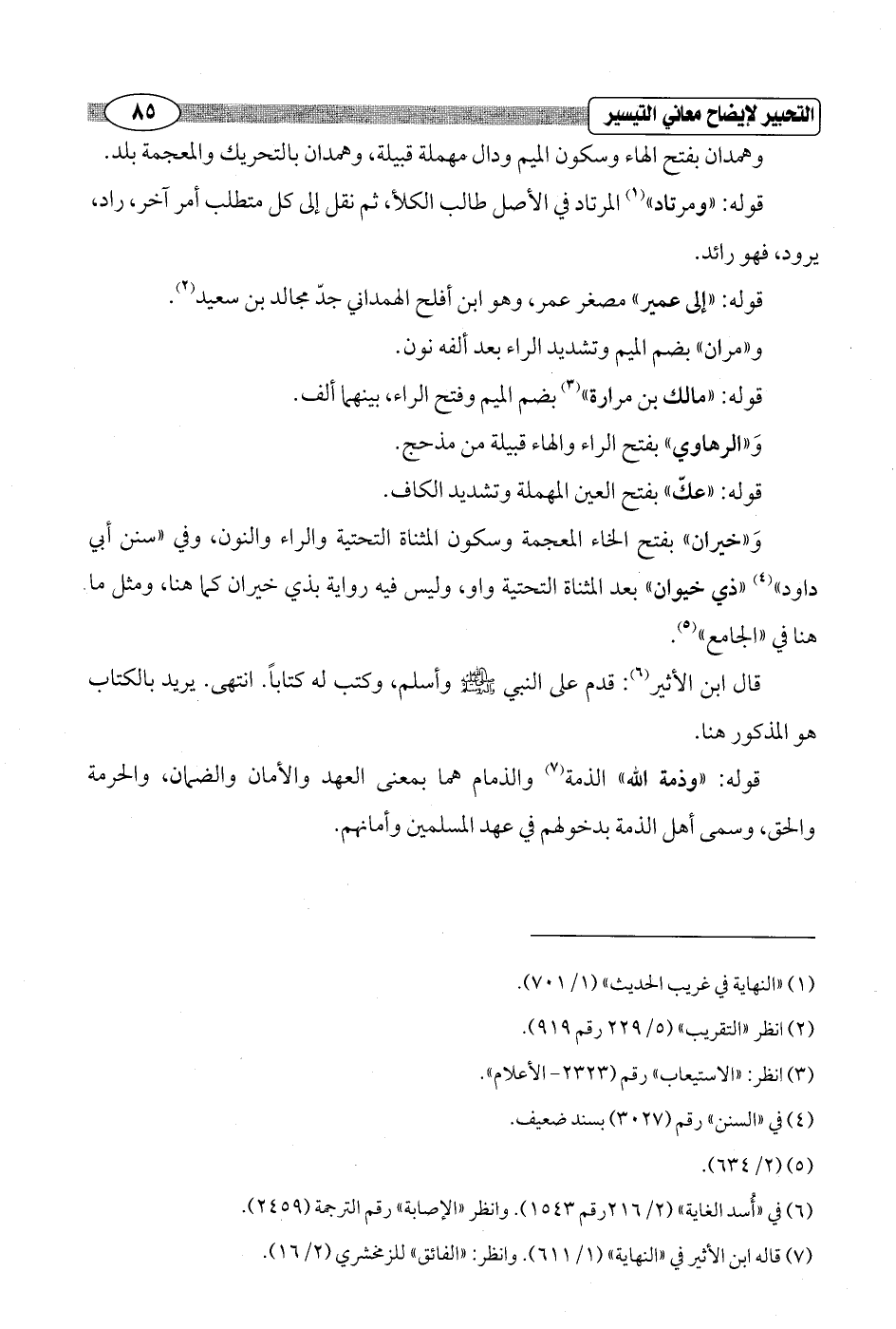 وَ"خيران" بفتح الخاء المعجمة وسكون المثناة التحتية والراء والنون، وفي "سنن أبي داود" (¬4) "ذي خيوان" بعد المثناة التحتية واو، وليس فيه رواية بذي خيران كما هنا، ومثل ما. هنا في "الجامع" (¬5).