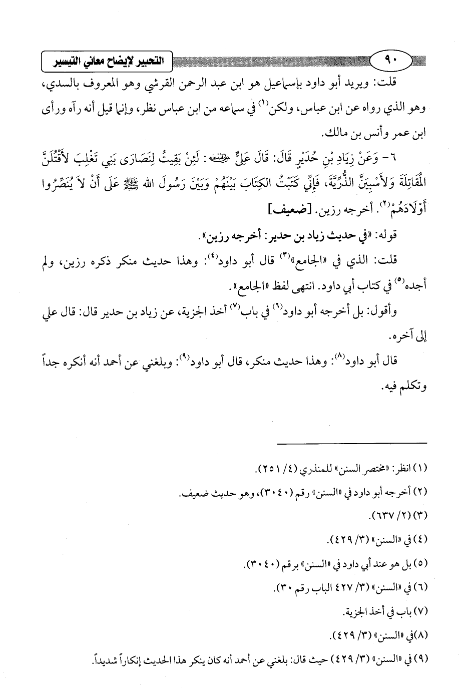 وأقول: بل أخرجه أبو داود (¬6) في باب (¬7) أخذ الجزية، عن زياد بن حدير قال: قال علي إلى آخره.