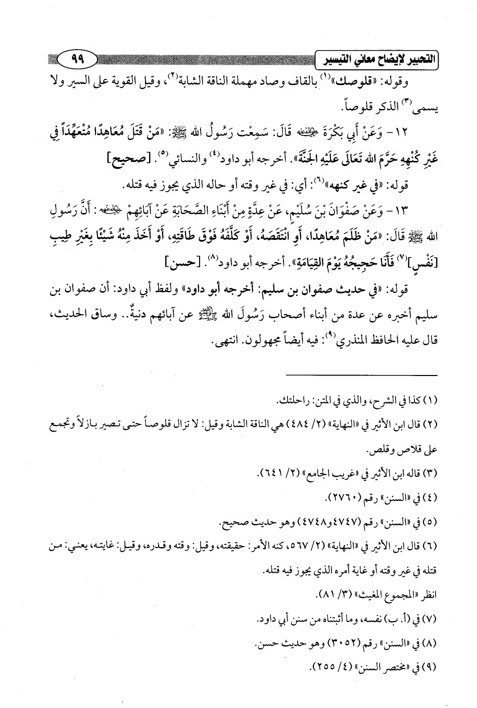 قوله: "في حديث صفوان بن سليم: أخرجه أبو داود" ولفظ أبي داود: أن صفوان بن سليم أخبره عن عدة من أبناء أصحاب رَسُولَ الله - صلى الله عليه وسلم - عن آبائهم دنيةٌ .. وساق الحديث، قال عليه الحافظ المنذري (¬9): فيه أيضاً مجهولون. انتهى.