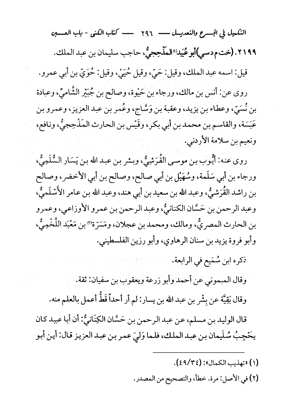 2199 - (خت م د سي) أبو عُبَيد (¬1) المَذْحِجيُّ، حاجب سليمان بن عبد الملك.
