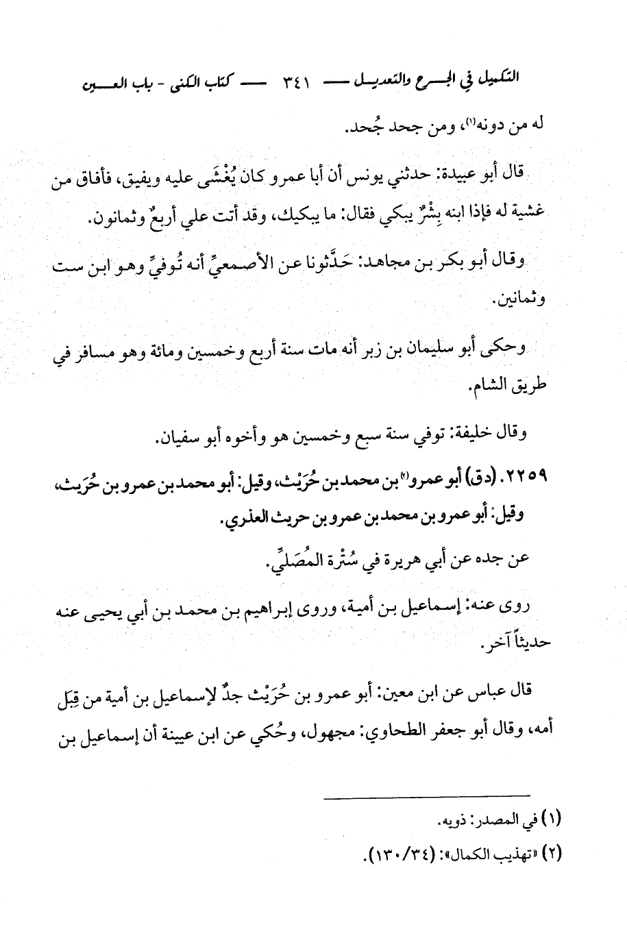 2259 - (د ق) أبو عمرو (¬2) بن محمد بن حُرَيْث، وقيل: أبو محمد بن عمرو بن حُرَيث، وقيل: أبو عمرو بن محمد بن عمرو بن حريث العذري.