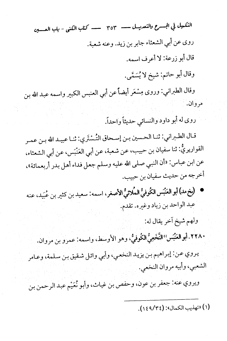 2280 - أبو العَنْبَس (¬1) النَّخَعِيُّ الكُوفيُّ، وهو الأوسط، واسمه: عمرو بن مروان.