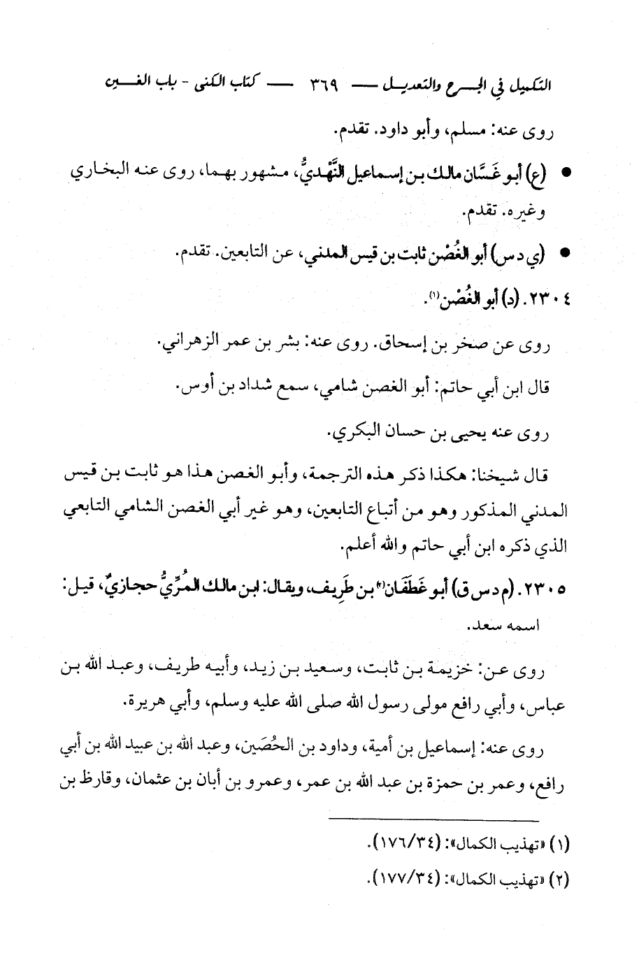 - (ع) أبو غَسَّان مالك بن إسماعيل النَّهْديُّ، مشهور بهما، روى عنه البخاري وغيره. تقدم.