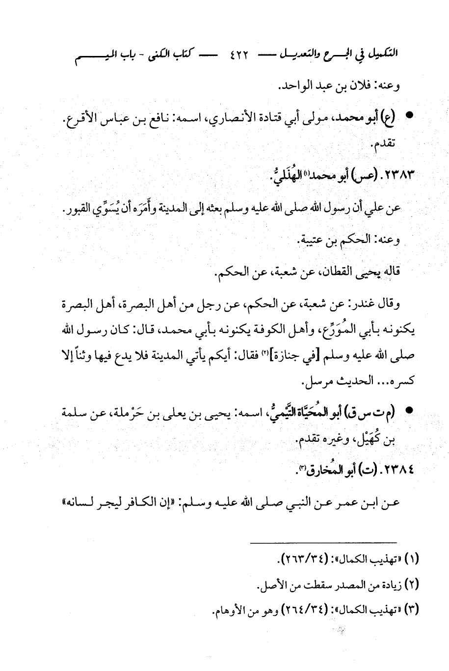 كتاب التكميل في الجرح والتعديل ومعرفة الثقات والضعفاء والمجاهيل (اسم الجزء: 3)