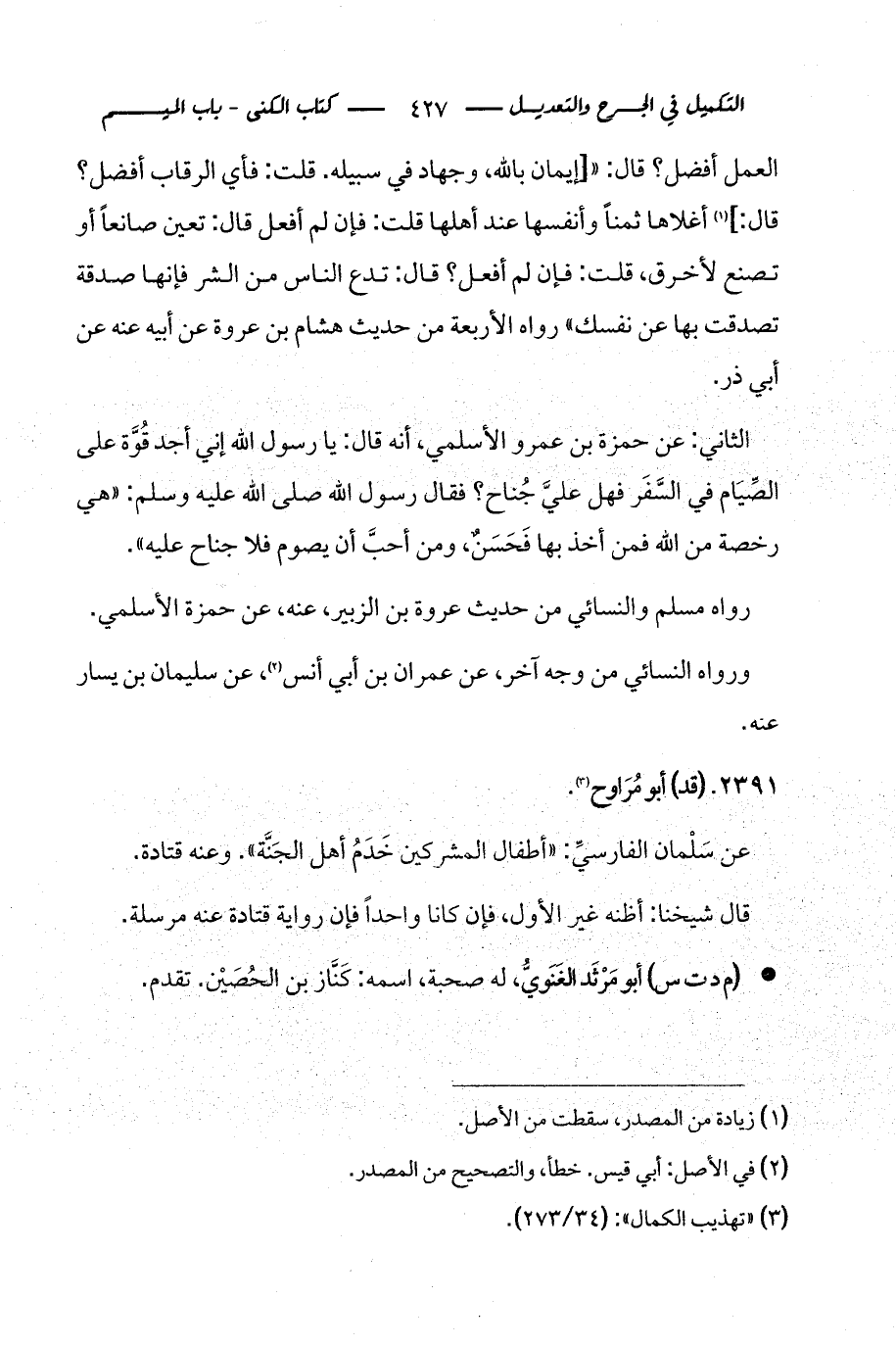 كتاب التكميل في الجرح والتعديل ومعرفة الثقات والضعفاء والمجاهيل (اسم الجزء: 3)