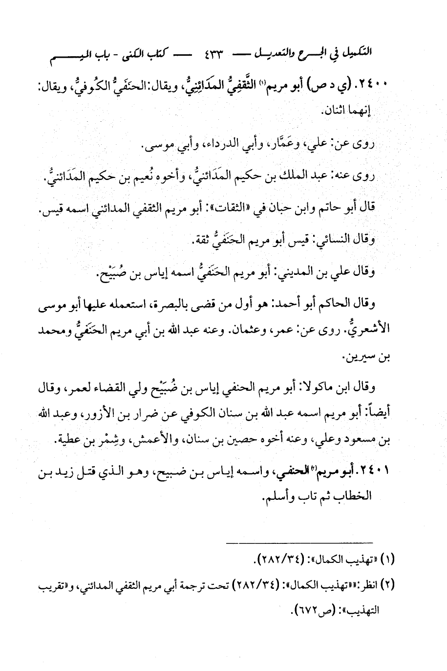 (¬2) انظر: ««تهذيب الكمال»: (34/ 282) تحت ترجمة أبي مريم الثقفي المدائني، و «تقريب التهذيب»: (ص672).