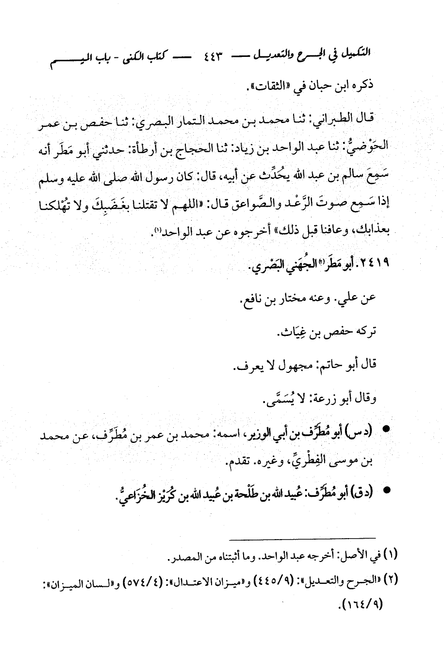 كتاب التكميل في الجرح والتعديل ومعرفة الثقات والضعفاء والمجاهيل (اسم الجزء: 3)
