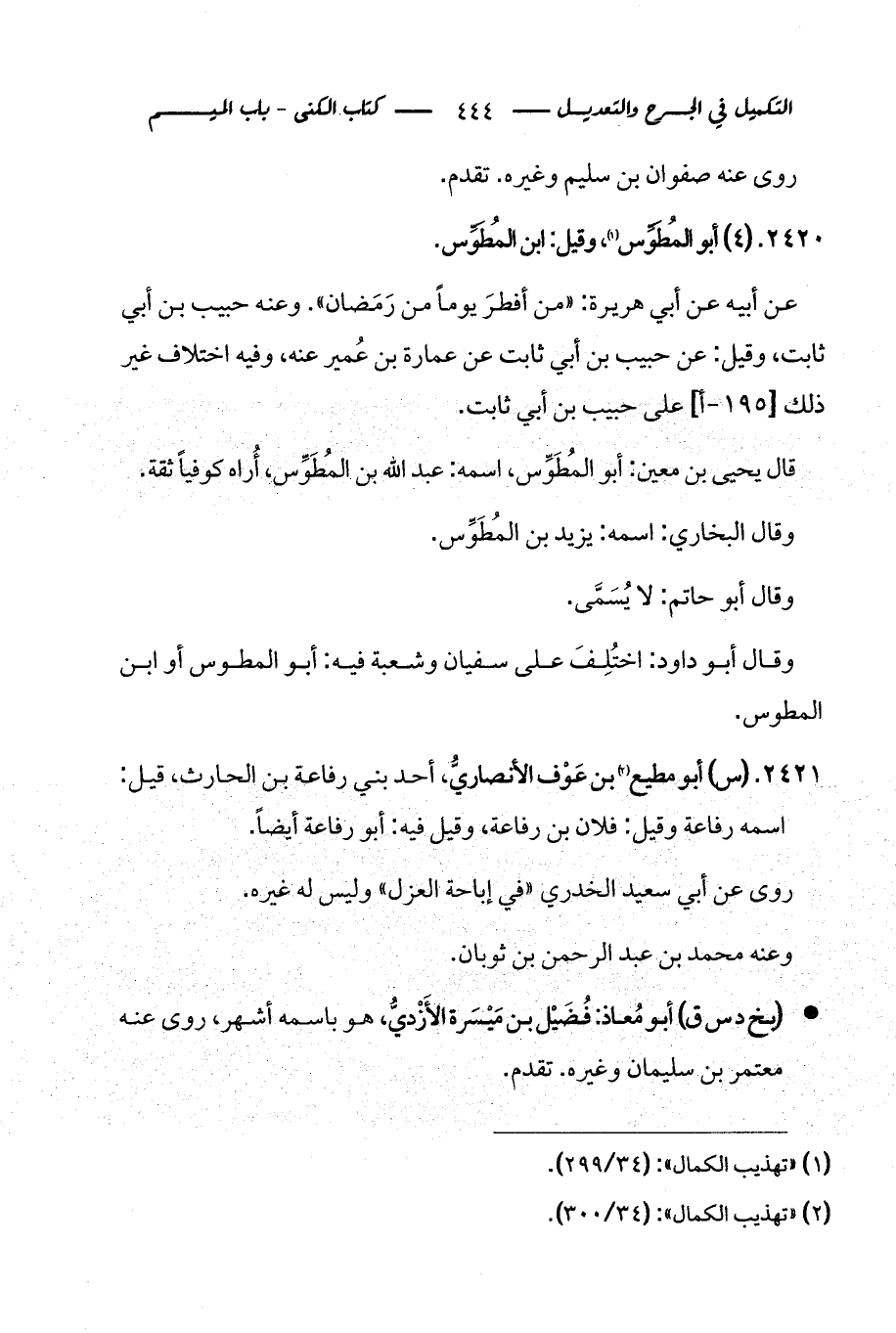 كتاب التكميل في الجرح والتعديل ومعرفة الثقات والضعفاء والمجاهيل (اسم الجزء: 3)