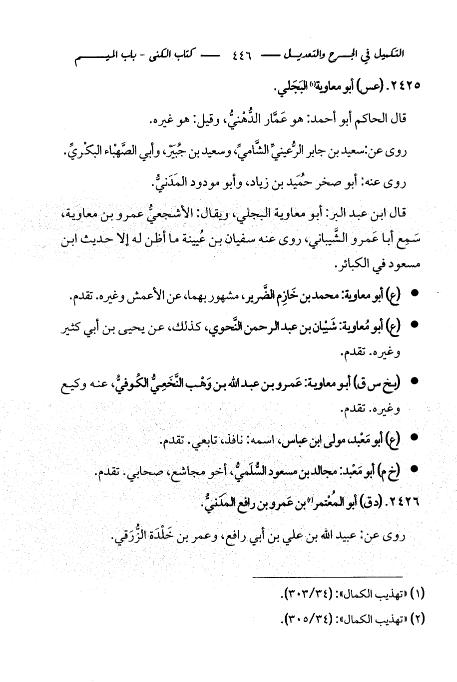 - (ع) أبو مُعاوية: شَيْبان بن عبد الرحمن النَّحوي، كذلك، عن يحيى بن أبي كثير وغيره. تقدم.