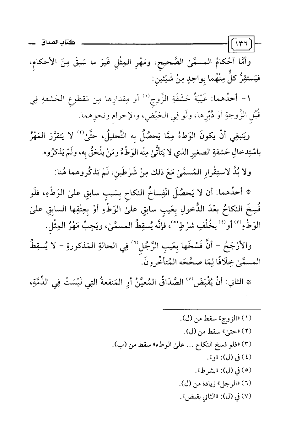 والأرْجَحُ -أنَّ فَسْخَها بِعَيبِ الرَّجُلِ (¬6) فِي الحالةِ المَذكورةِ- لا يُسقِطُ المسمَّى خِلَافًا لِمَا صحَّحَه المُتأخِّرونَ.