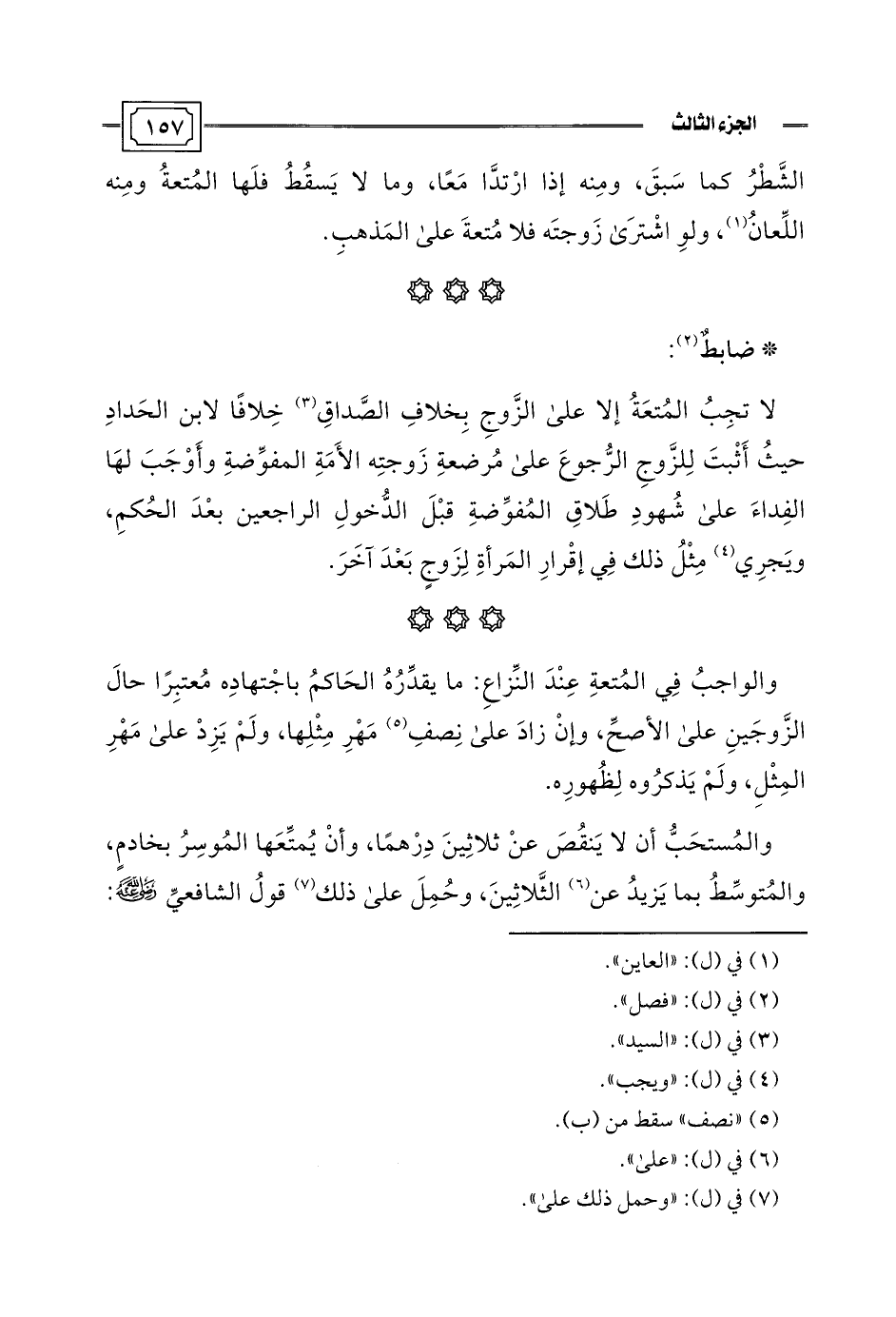 والمُستحَبُّ أن لا يَنقُصَ عنْ ثلاثِينَ دِرْهمًا، وأنْ يُمتِّعَها المُوسِرُ بخادمٍ، والمُتوسِّطُ بما يَزيدُ عن (¬6) الثَّلاثِينَ، وحُمِلَ على ذلك (¬7) قولُ الشافعيِّ -رضي اللَّه عنه-:
