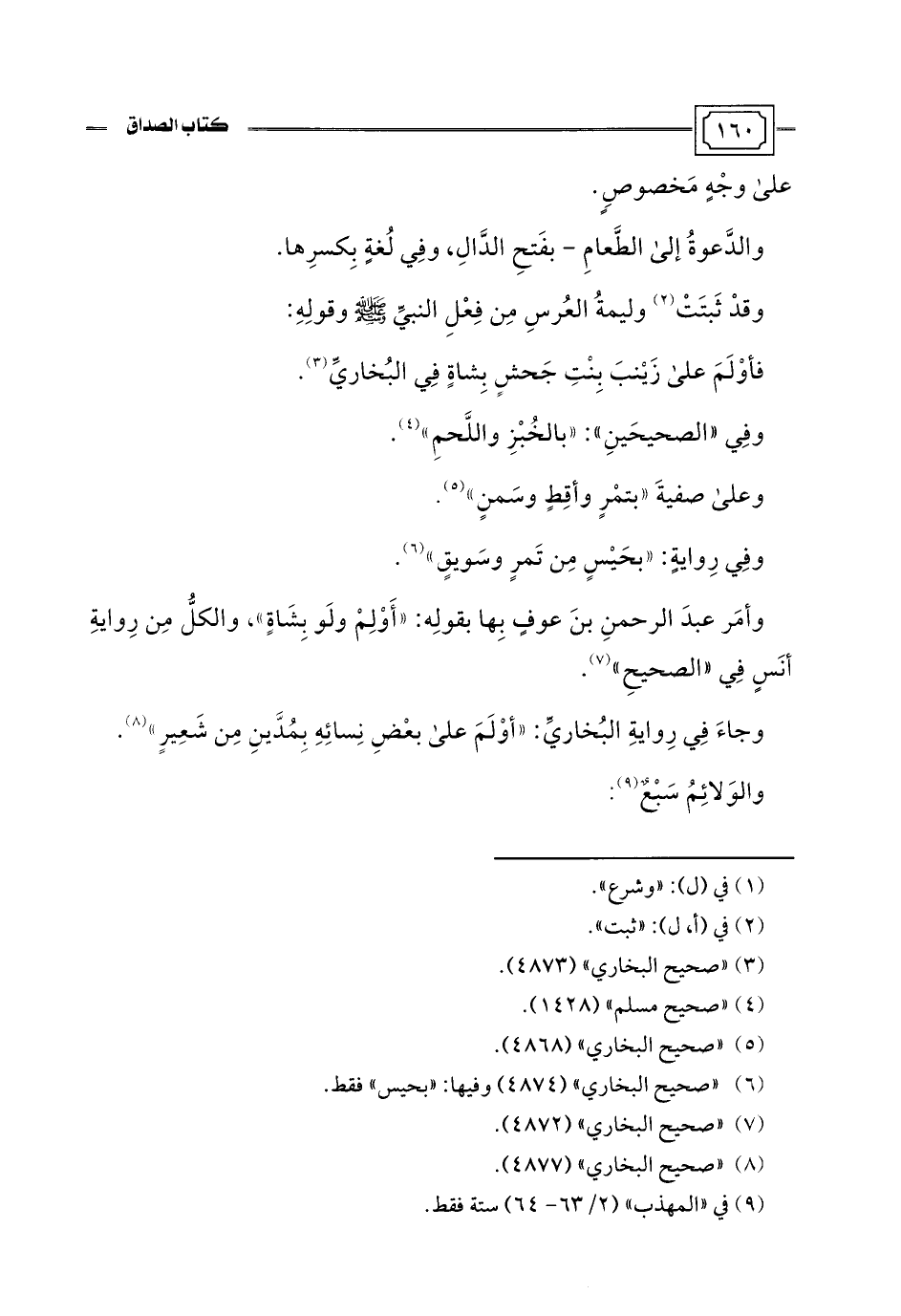 فأوْلَمَ على زَيْنبَ بِنْتِ جَحشٍ بِشاةٍ فِي البُخاريِّ (¬3).
