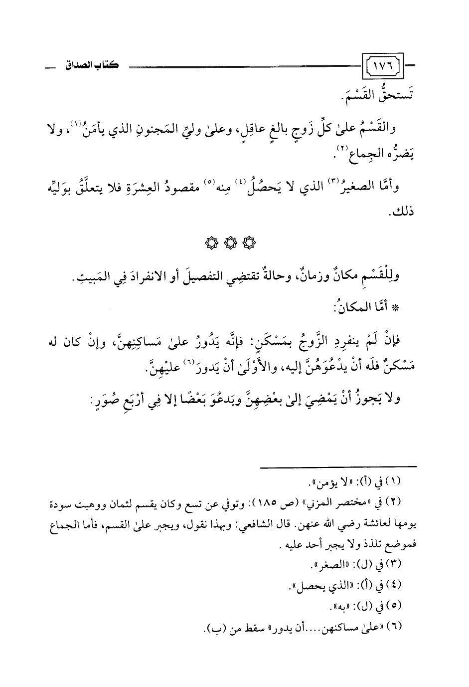 ولِلْقَسْمِ مكانٌ وزمانٌ، وحالةٌ تقتضِي التفصيلَ أو الانفرادَ فِي المَبيتِ.