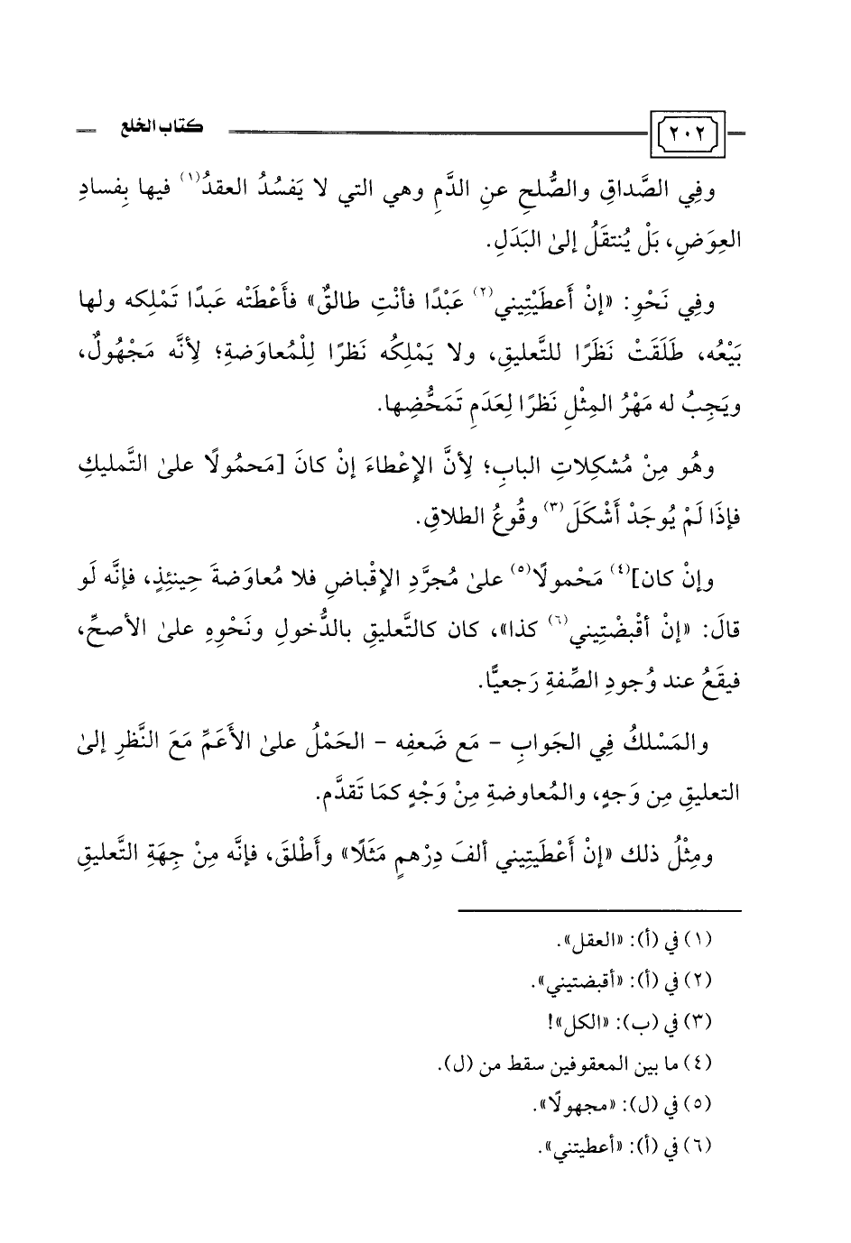 والمَسْلكُ فِي الجَوابِ -مَع ضَعفِه- الحَمْلُ على الأَعَمِّ مَعَ النَّظرِ إلى التعليقِ مِن وَجهٍ، والمُعاوضةِ مِنْ وَجْهٍ كمَا تَقدَّم.