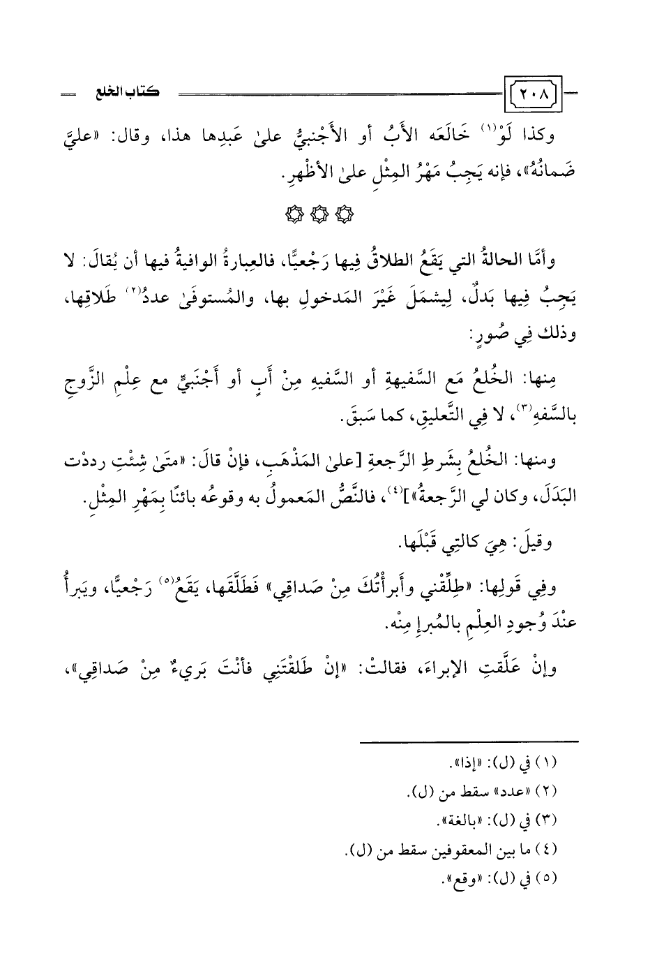مِنها: الخُلعُ مَع السَّفيهةِ أو السَّفيهِ مِنْ أَبٍ أو أَجْنَبيٍّ مع عِلْمِ الزَّوجِ بالسَّفهِ (¬3)، لا فِي التَّعليقِ، كما سَبقَ.