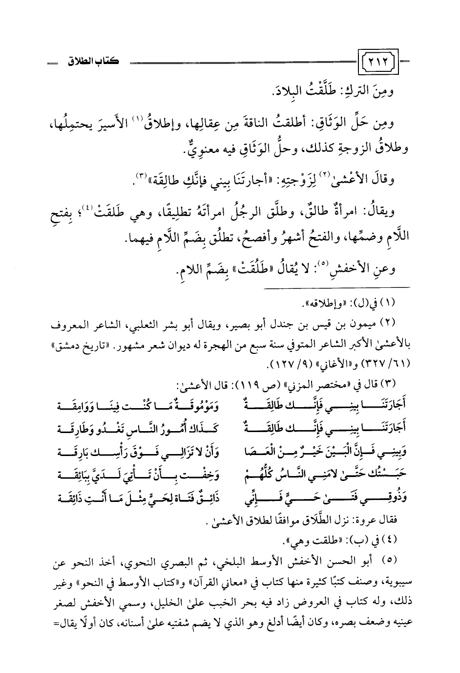 فقال عروة: نزل الطَّلَاق موافقًا لطلاق الأعشى.