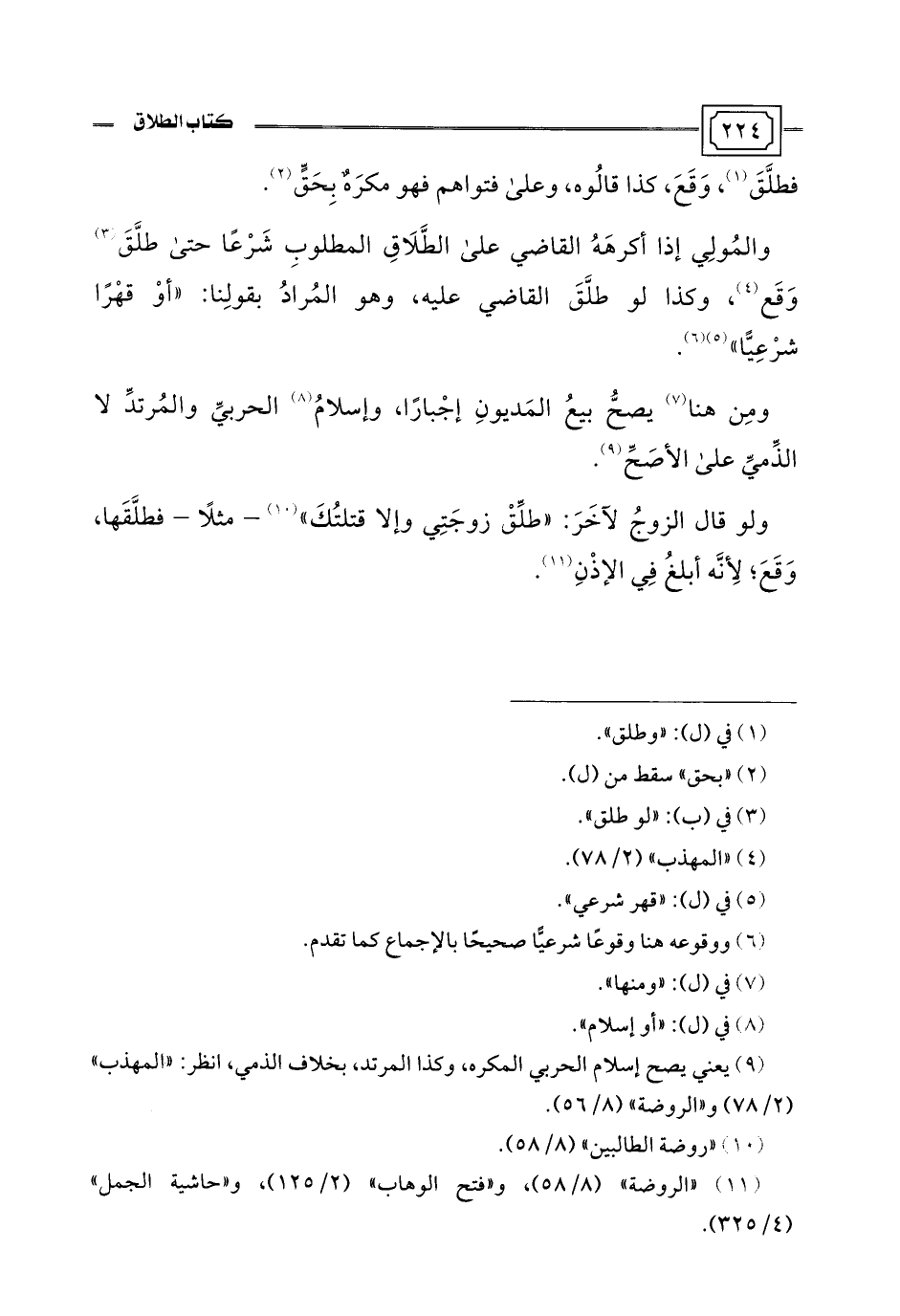 (¬11) "الروضة" (8/ 58)، و"فتح الوهاب" (2/ 125)، و"حاشية الجمل" (4/ 325).