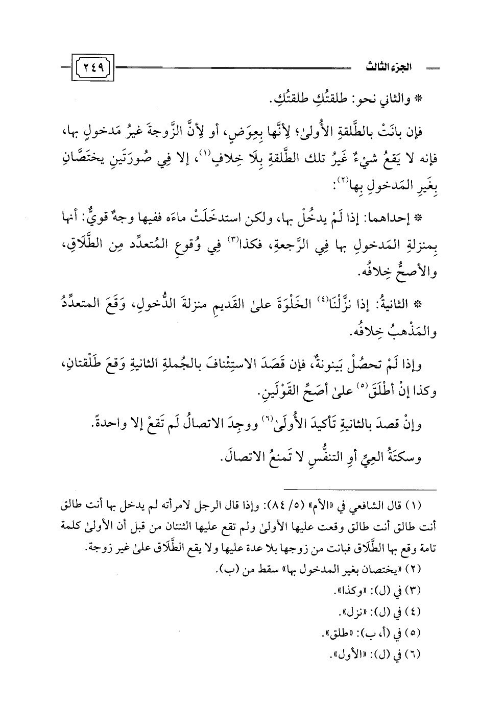 (¬1) قال الشافعي في "الأم" (5/ 84): وإذا قال الرجل لامرأته لم يدخل بها أنت طالق أنت طالق أنت طالق وقعت عليها الأولى ولم تقع عليها الثنتان من قبل أن الأولى كلمة تامة وقع بها الطَّلَاق فبانت من زوجها بلا عدة عليها ولا يقع الطَّلَاق على غير زوجة.