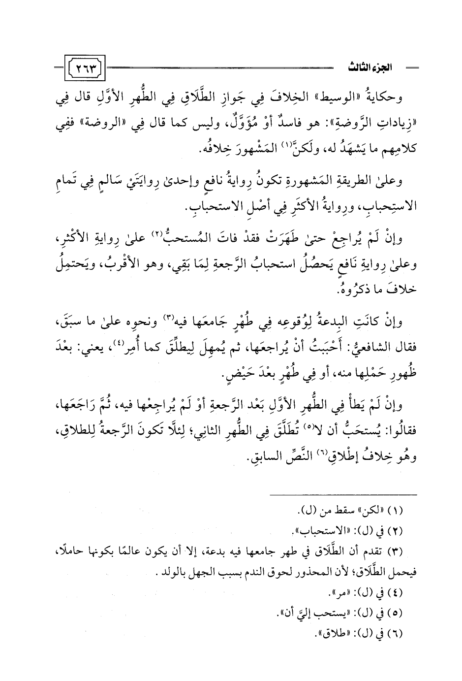 (¬3) تقدم أن الطَّلَاق في طهر جامعها فيه بدعة، إلا أن يكون عالمًا بكونها حاملًا، فيحمل الطَّلَاق؛ لأن المحذور لحوق الندم بسبب الجهل بالولد.