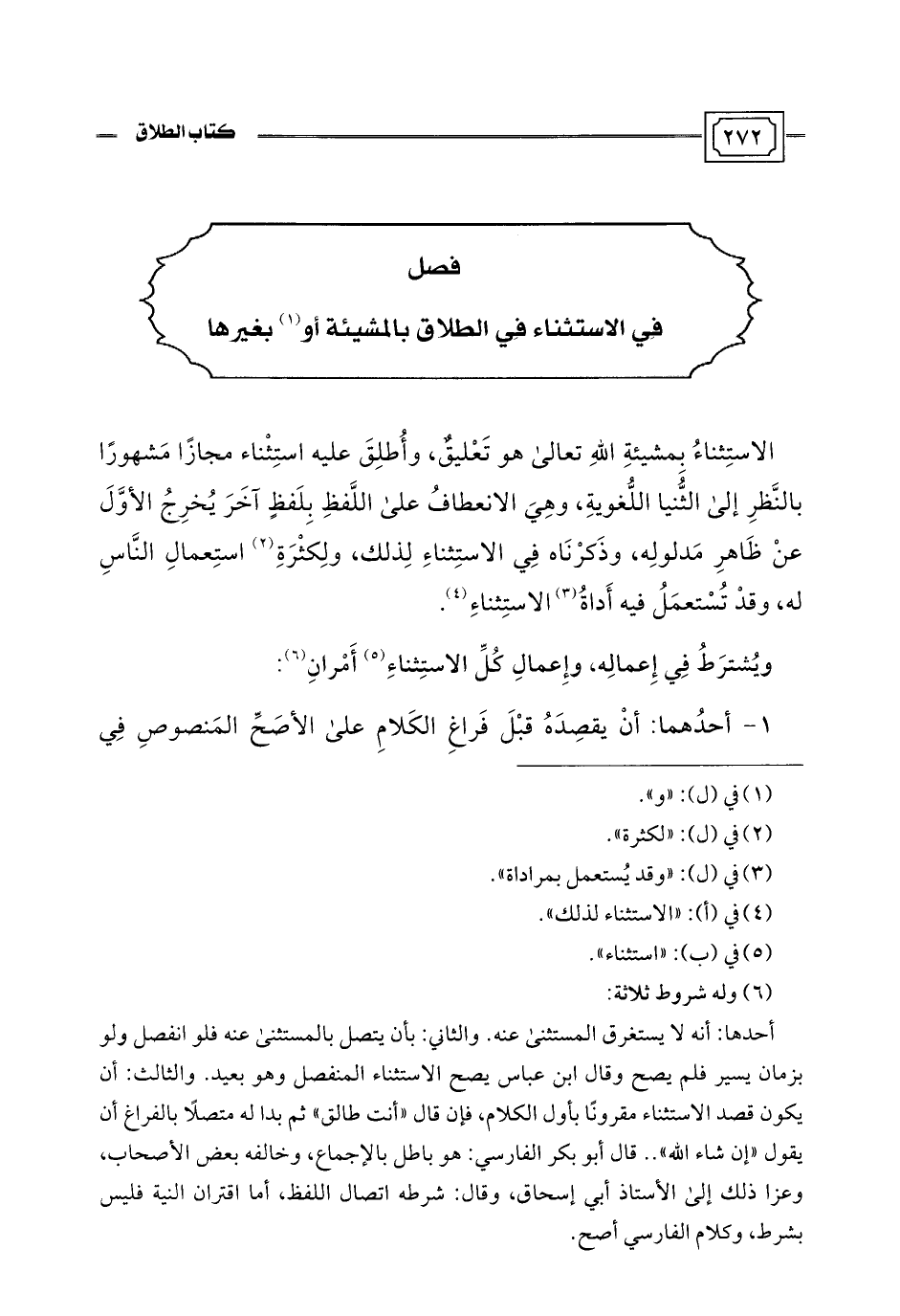 فصل في الاستثناء فِي الطلاق بالمشيئة أو (¬1) بغيرها