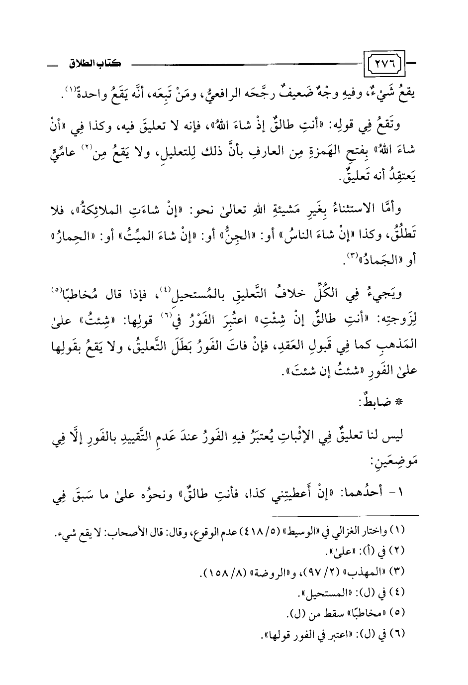 ليس لنا تعليقٌ فِي الإثْباتِ يُعتبَرُ فيهِ الفَورُ عندَ عَدمِ التَّقييدِ بالفَورِ إلَّا فِي مَوضعَينِ: