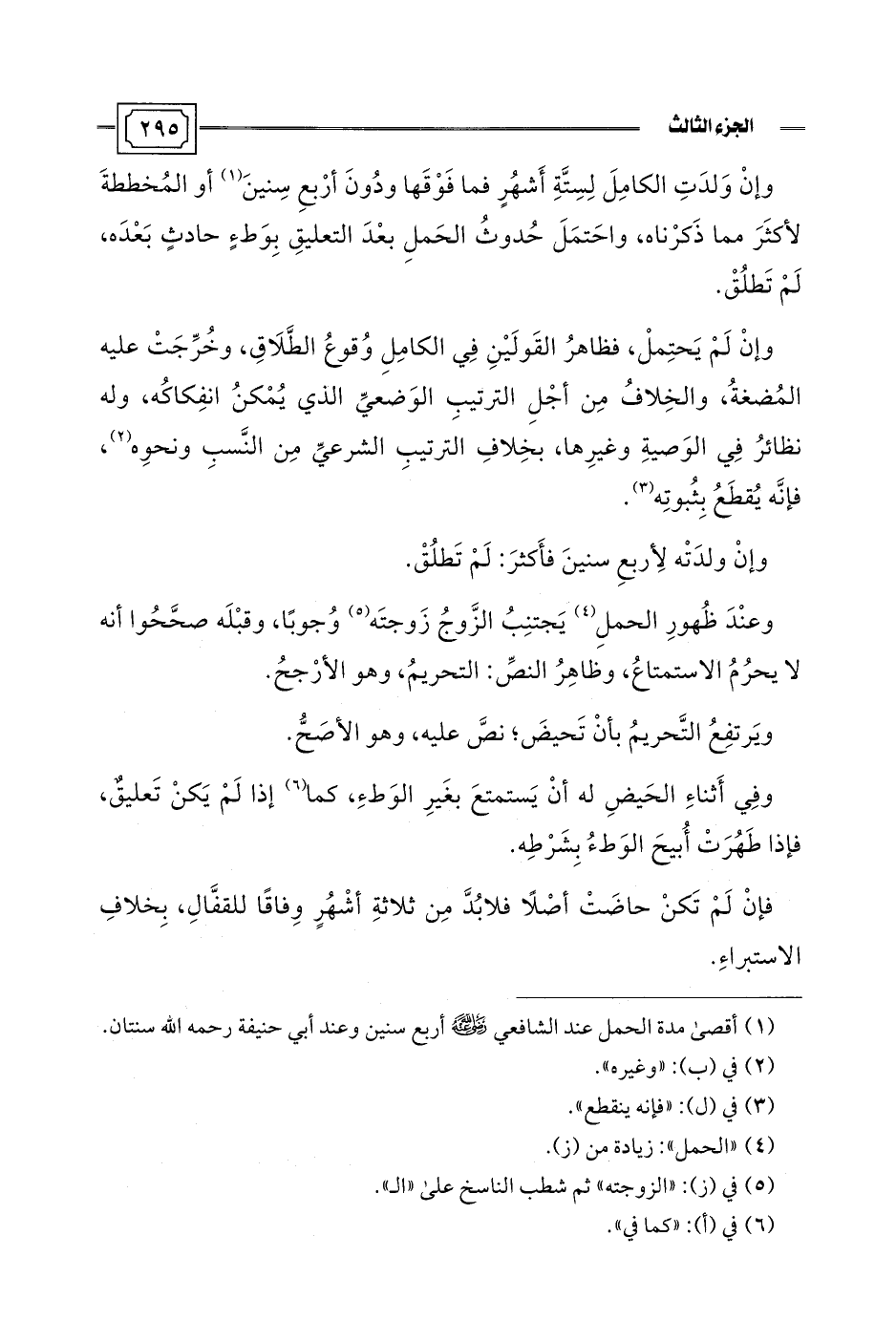 (¬1) أقصى مدة الحمل عند الشافعي -رضي اللَّه عنه- أَربع سنين وعند أبي حنيفة رحمه اللَّه سنتان.