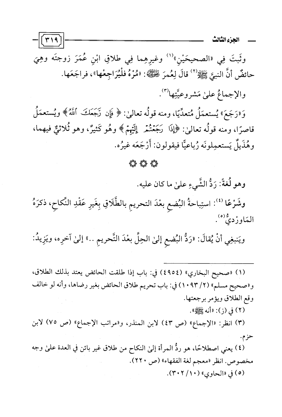 (¬4) يعني اصطلاحًا، هو ردُّ المرأة إلى النكاح من طلاق غير بائن في العدة على وجه مخصوص. انظر "معجم لغة الفقهاء" (ص 220).