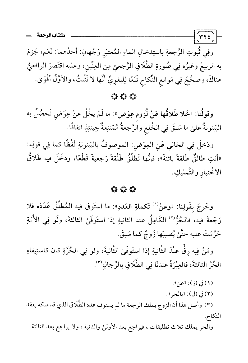 (¬3) وأصل هذا أن الزوج يملك الرجعة ما لم يستوف عدد الطَّلَاق الذي قد ملكه بعقد النكاح.