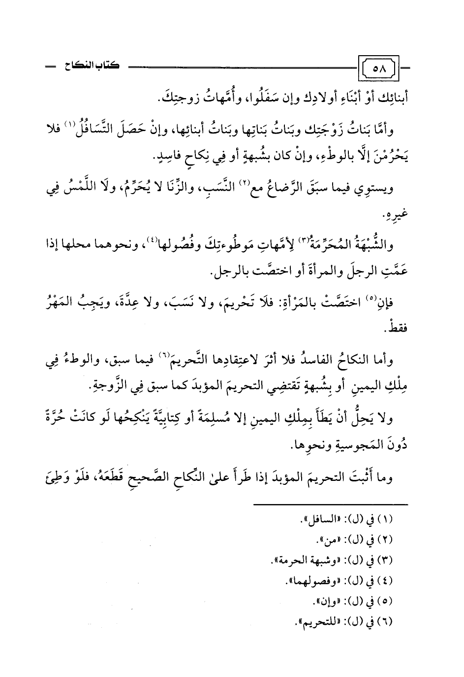 والشُّبْهَةُ المُحَرِّمَةُ (¬3) لِأمَّهاتِ مَوطُوءتِكَ وفُصُولها (¬4)، ونحوهما محلها إذا عَمَّتِ الرجلَ والمرأةَ أو اختصَّت بالرجل.